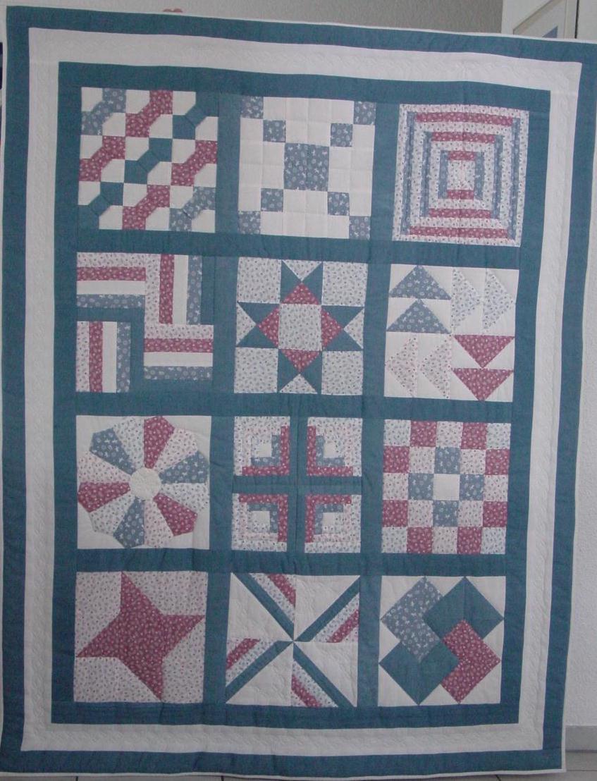 Alle Quilts einzeln zu beschreiben, würde langweilen und deshalb gibt es hier eine Auswahl meiner Arbeiten. Sie sind mit der Maschine genäht, wenn nichts anderes angegeben ist, und mit der Hand gequiltet.